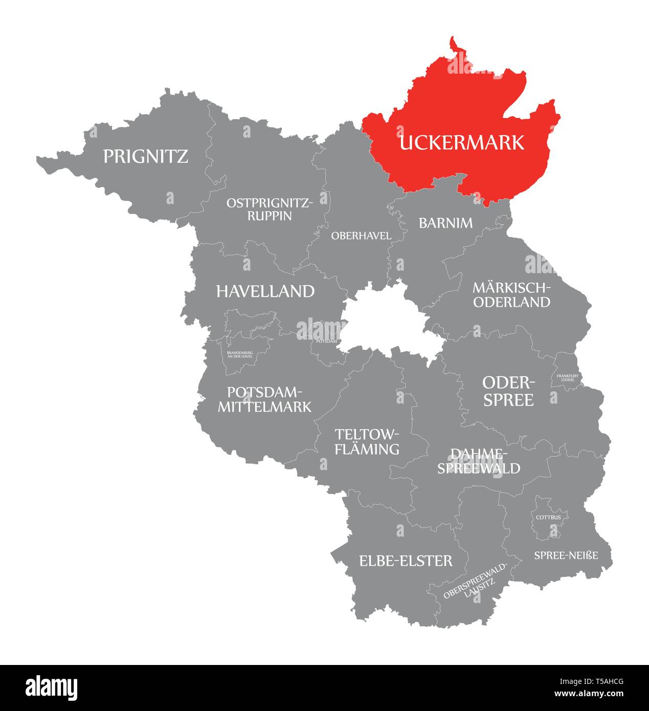 Uckermark County Red Highlighted In Map Of Brandenburg Germany Stock Vector Image Art Alamy