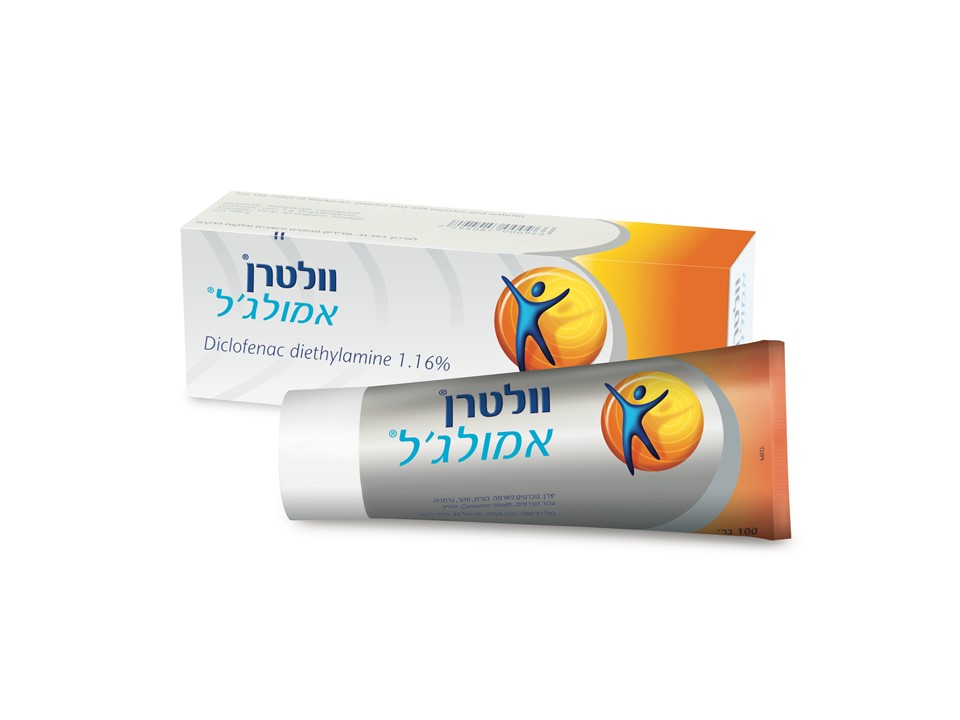 וולטרן אמולגל- וולטרן דיאתילאמין למריחה של 2-4 גר 3-4 פעמים ביום השימוש בגל בריכוז של 1 מביא לספיגה סיסטמית נמוכה פי 17 בהוואה לטיפול פומי. וולטרן אמולגל פורטה 232 Voltaren Emulgel Forte. המדובר בתכשירים פופולריים הניתנים במשחה גל גלולה או זריקה שעל פי ההערכות משתמשים בהם מאות אלפי ישראלים בשנה לטיפול בכאבים אורתופדיים.